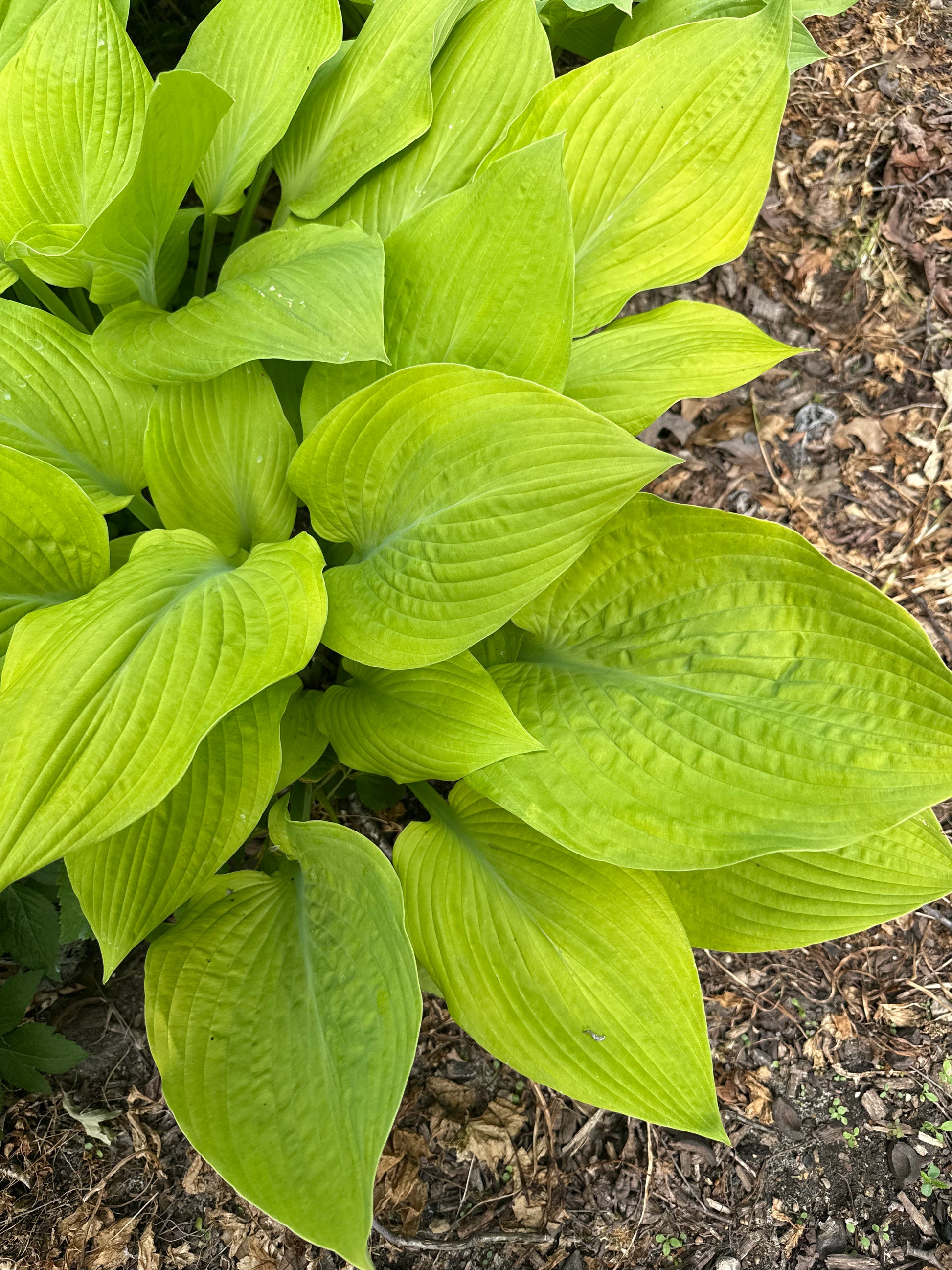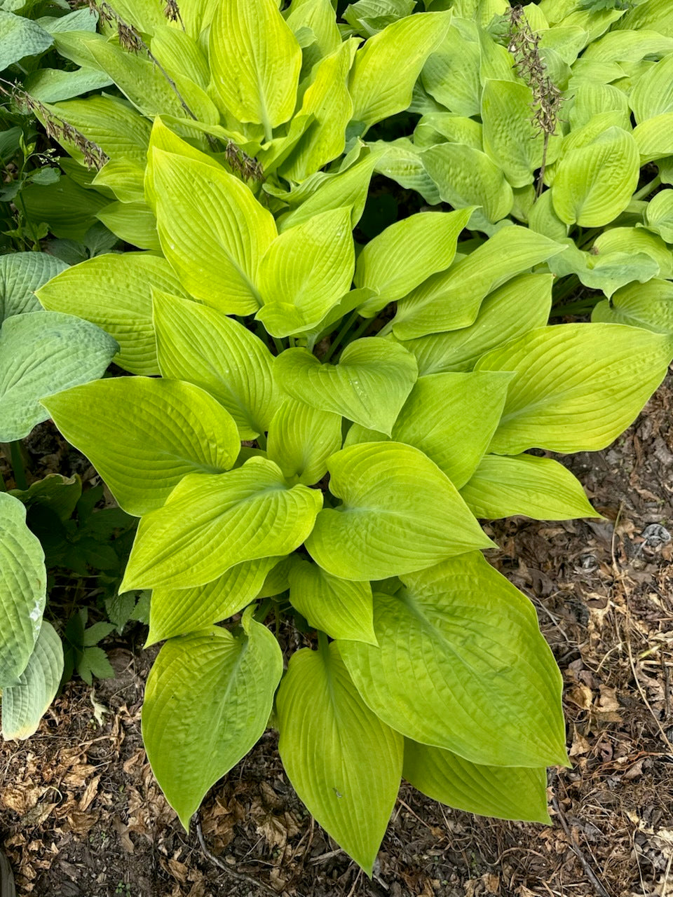 Arnold Black’ is a cross between ‘White Vision’ and Hosta Montana macrophylia and is large in size, with leaves that are deeply veined, rippled/slightly wavy and emerge bright gold in color. Produces very pale lavender held up on tall scapes.