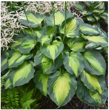 An ‘Old Glory’ sport with a striking color combo that has a light-yellow center and thick dark green edged leaves.